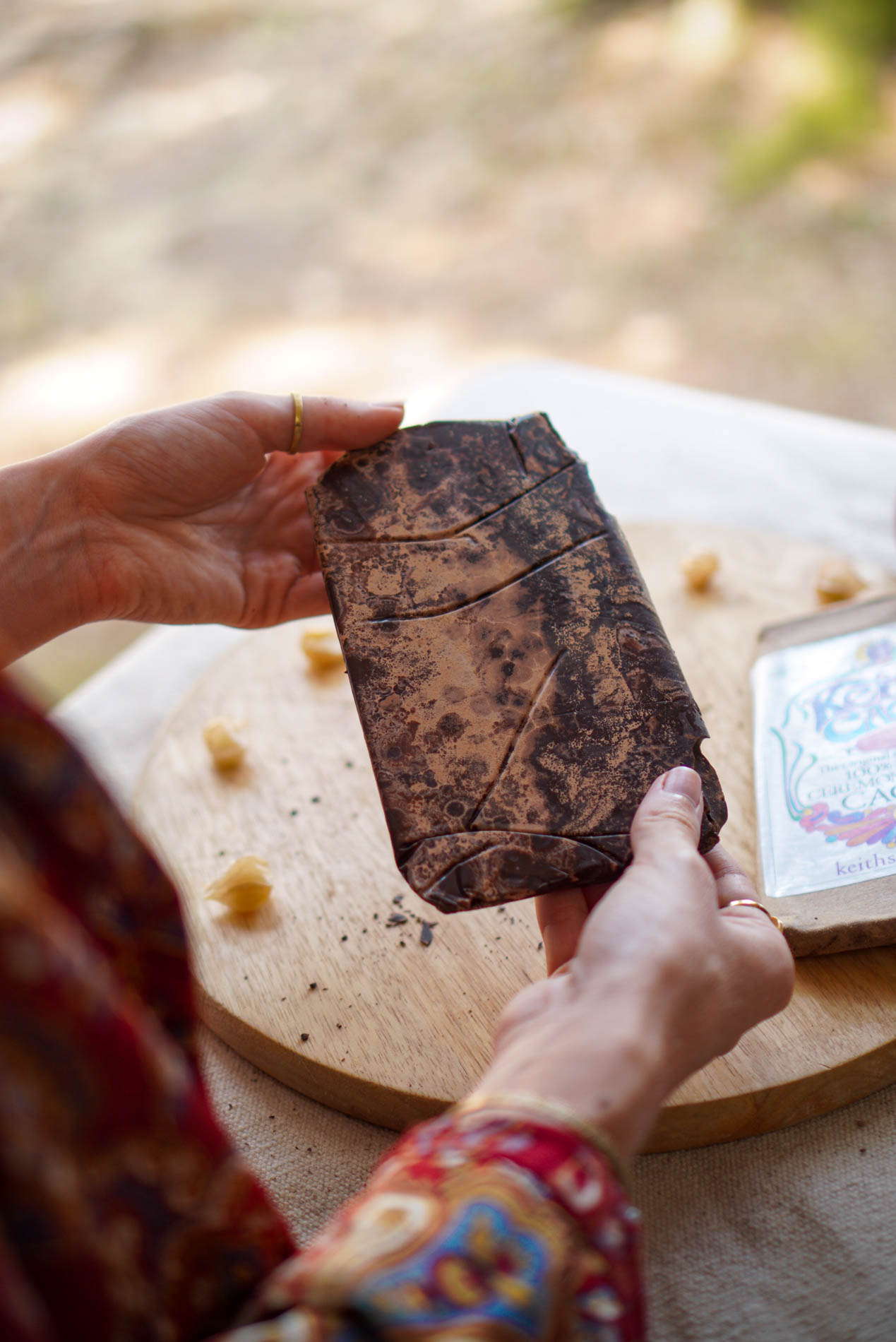 This cacao turned out to be surprisingly potent, with an effect that was both physical and mental. We felt held by a steady, enveloping warmth, while at the same time lighter and more at ease inside. It created an interesting contrast: the body felt anchored while the mind seemed to move more freely.